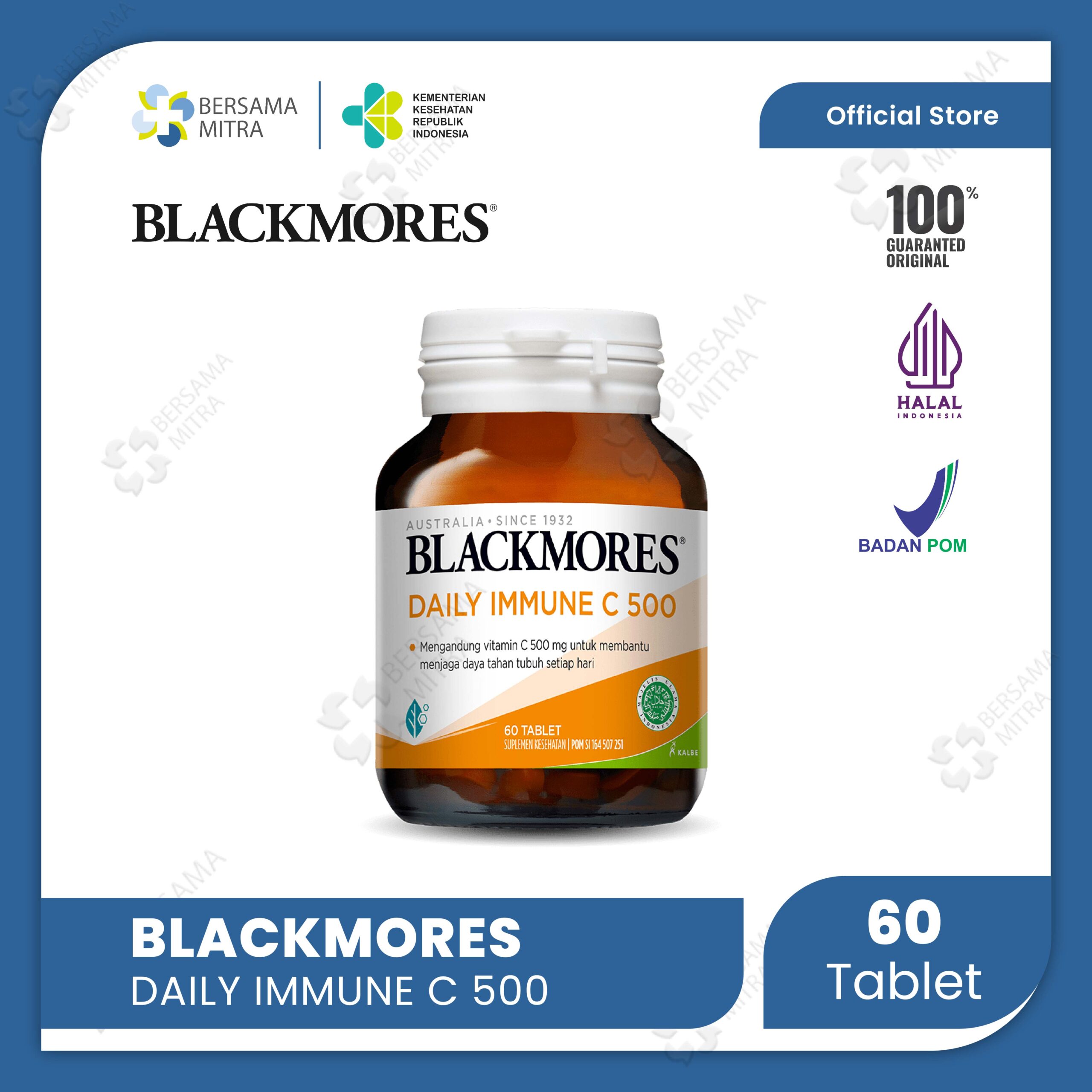 Diproduksi oleh Blackmores (Australia) dan didistribusikan secara resmi oleh Kalbe, produk ini sudah bersertifikasi BPOM dan HALAL MUI, sehingga aman dan terpercaya untuk dikonsumsi setiap hari.