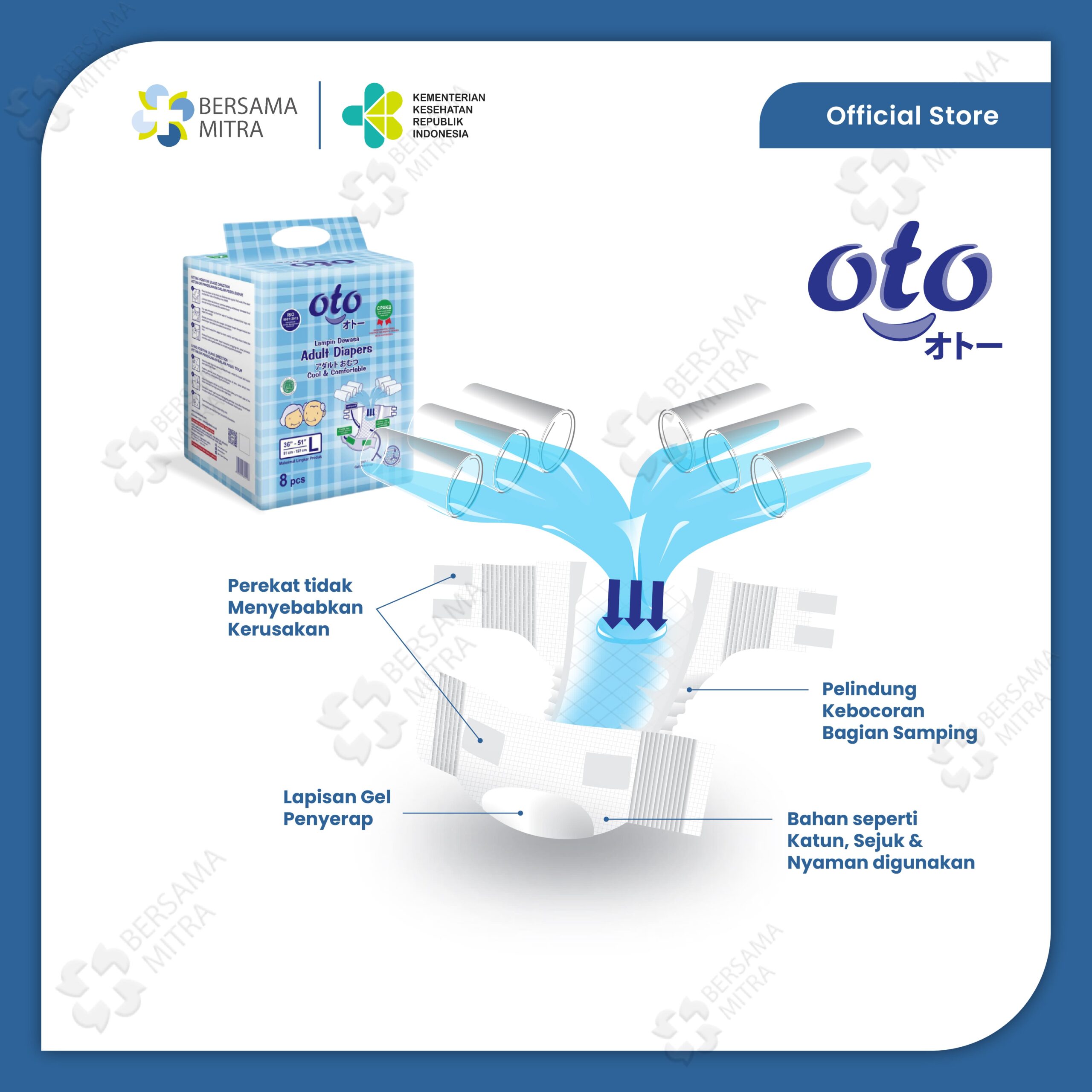 Detail produk dari OTO Diapers Adult / Popok Dewasa model Perekat ukuran L, isi 8 pcs. Berdaya serap tinggi, Permukaan popok sangat lembut serta tidak panas karena adanya sirkulasi udara, Pelindung perekat tidak merusak popok sehingga dapat direkatkan berulang kali